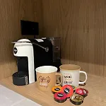 실내 온도 조절기, 실내 온도 조절기, 실내 온도 조절기와 커피메이커, 커피메이커, 세탁기 갖춘 객실이 있습니다.